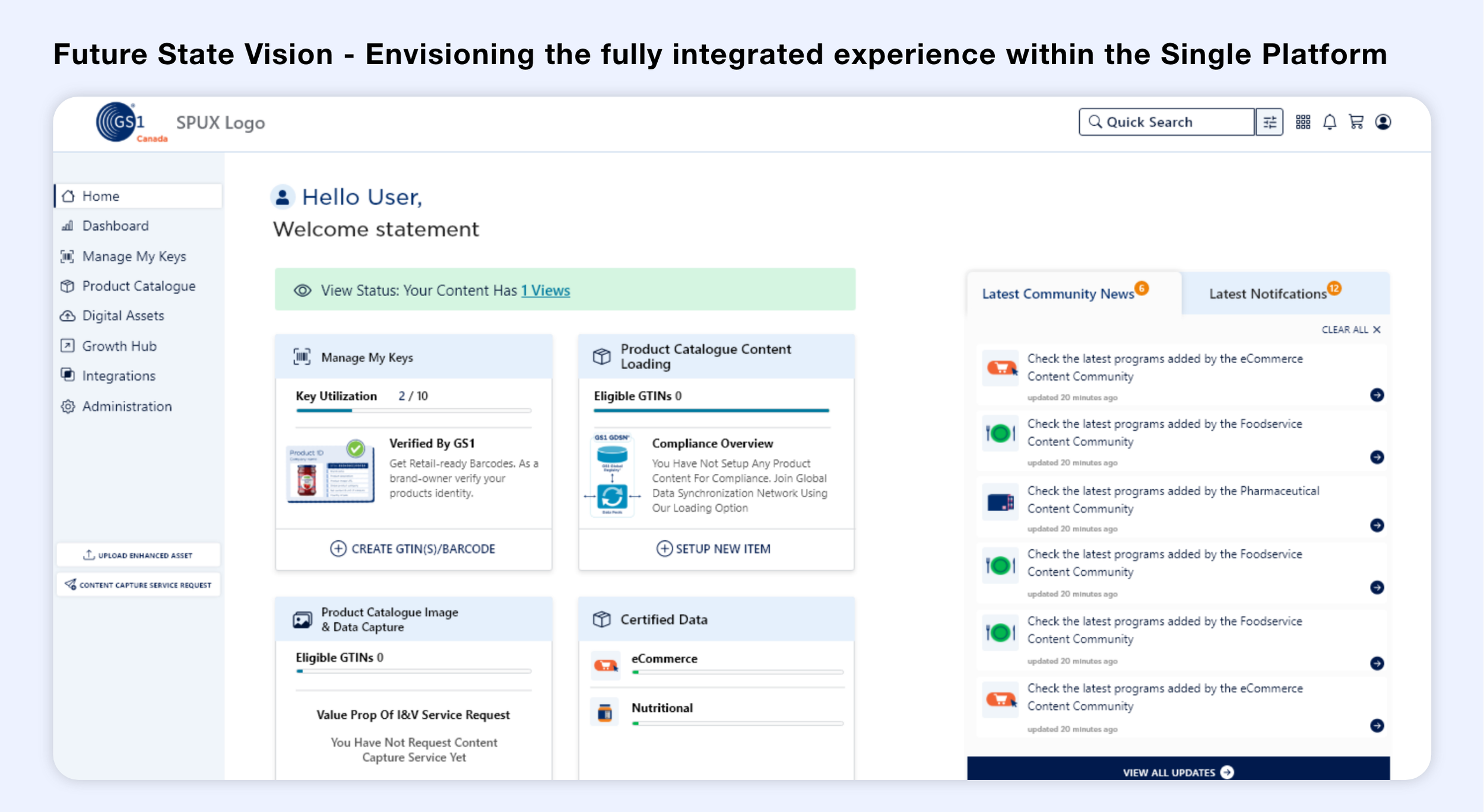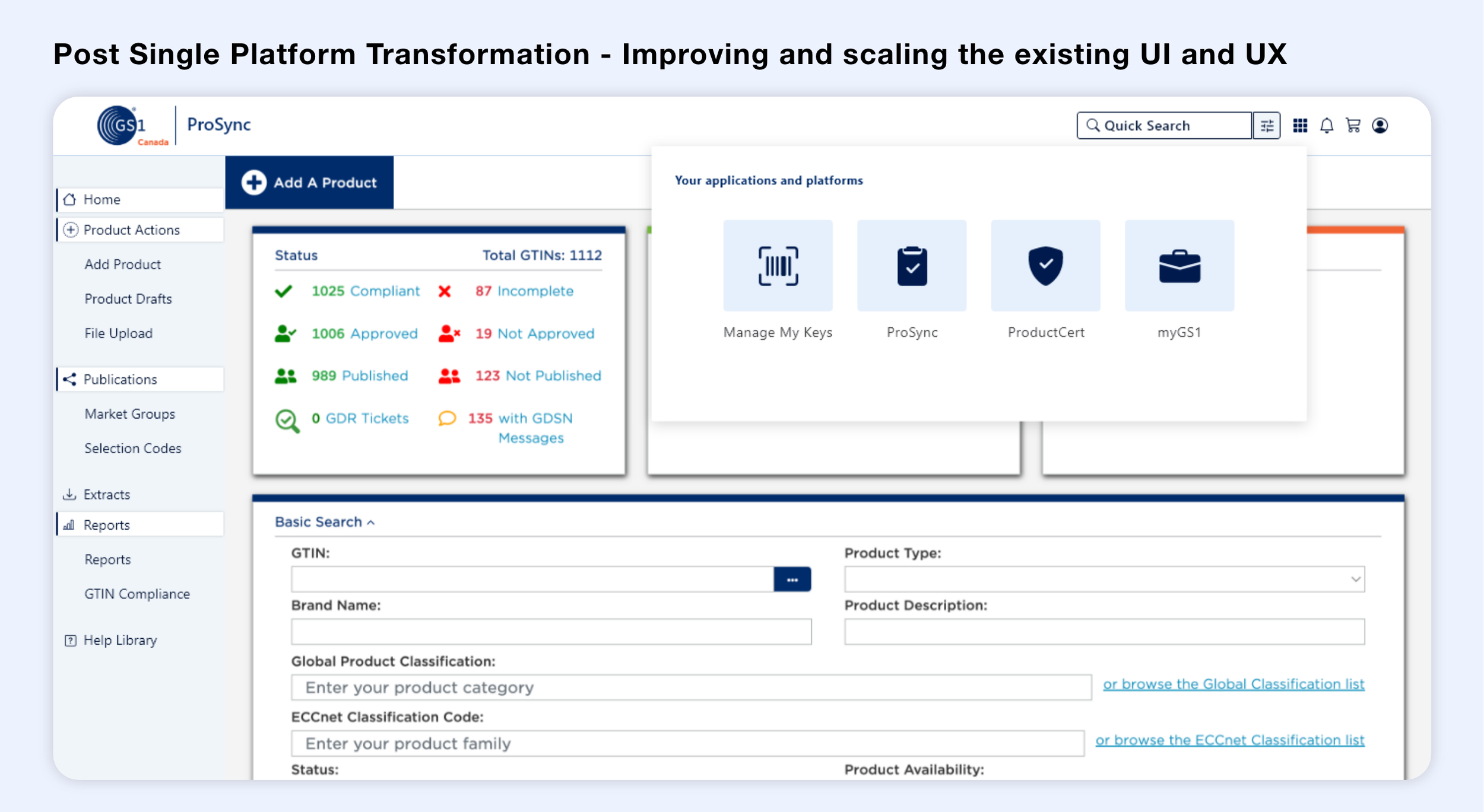 Problem: GS1 Canada wanted a Single Platform to integrate 8 different industry standard applications which operated independently, resulting in fragmented experiences, data errors, and supply chain inefficiencies. “One platform” had been an organizational vision since 2017 - my role was to turn it into a clear, actionable strategy.