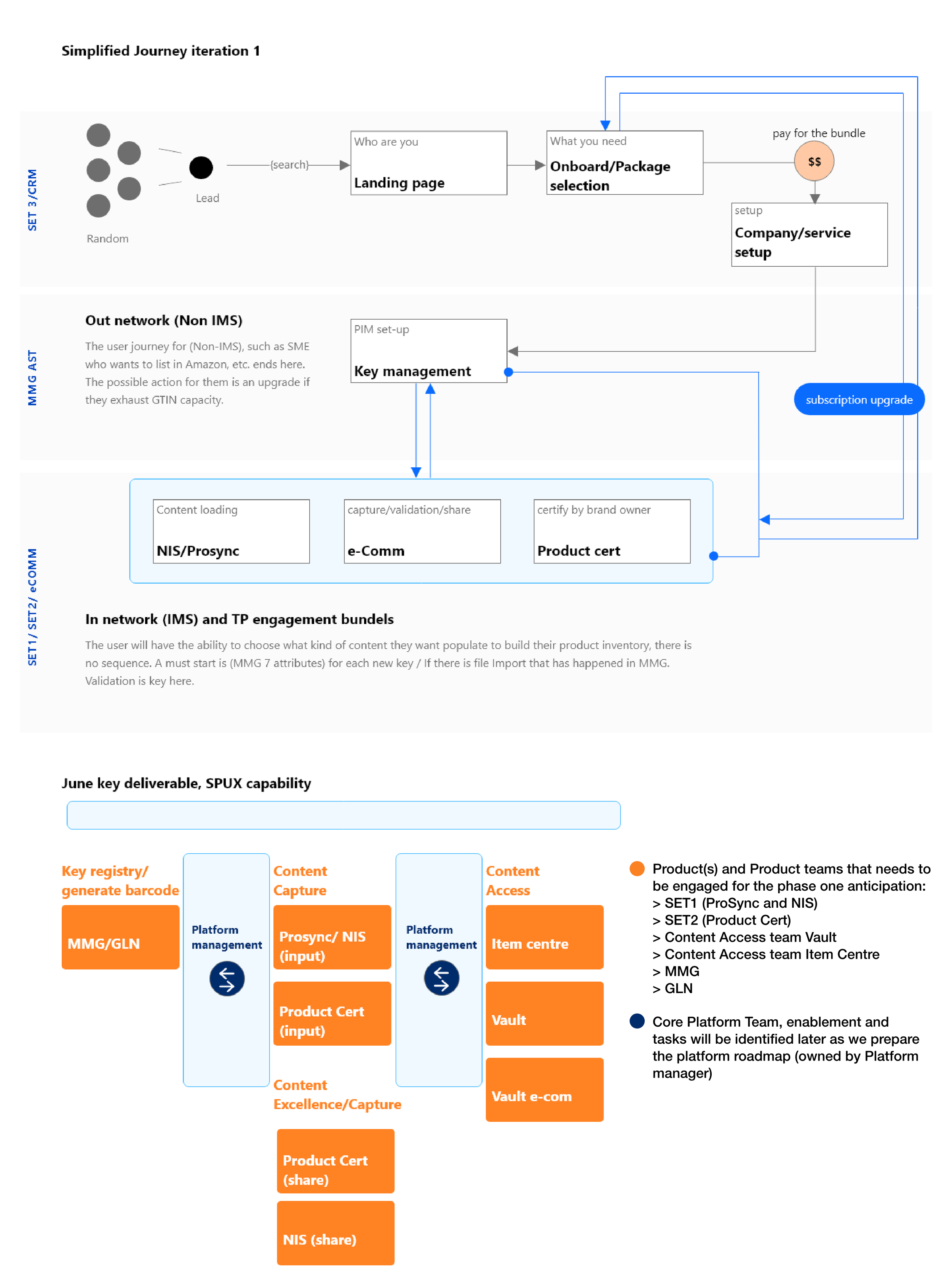 I facilitated design workshops to identify Milestone 0, map dependencies, and streamline data flow with minimal steps. The goal was to help the core platform team zoom out and focus on the simplest, most efficient approach, rather than being constrained by existing technological complexities.