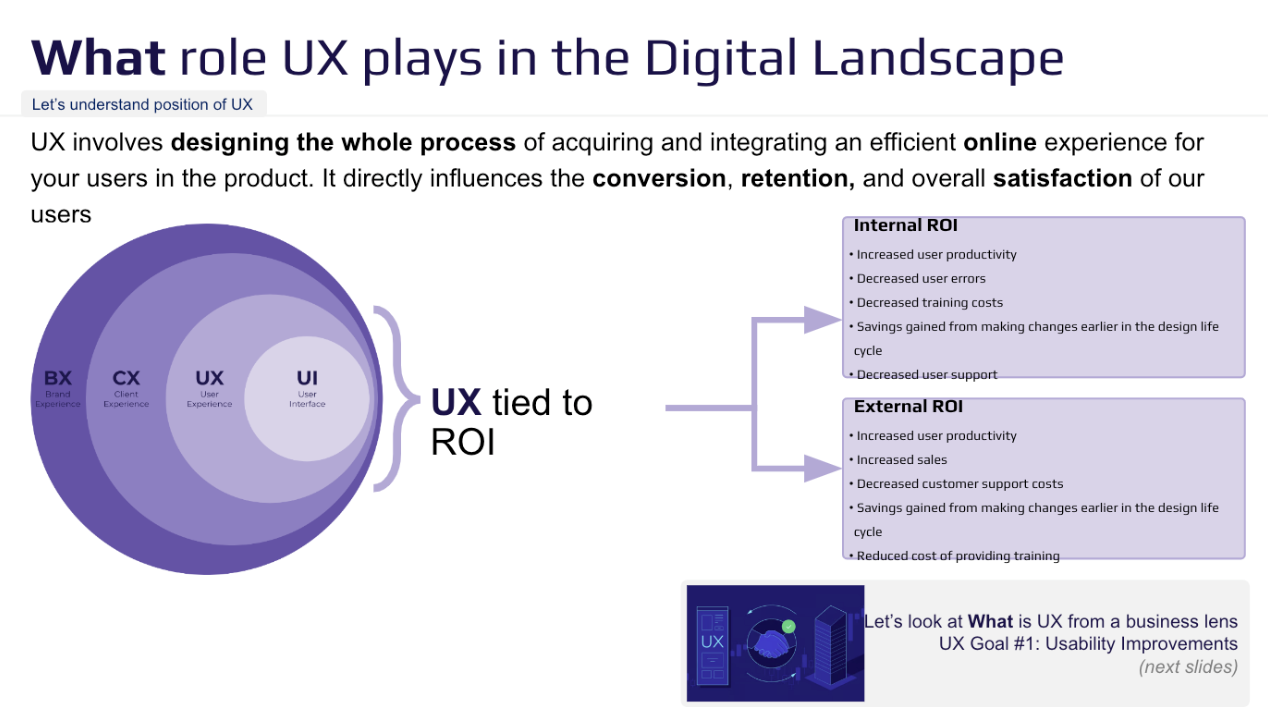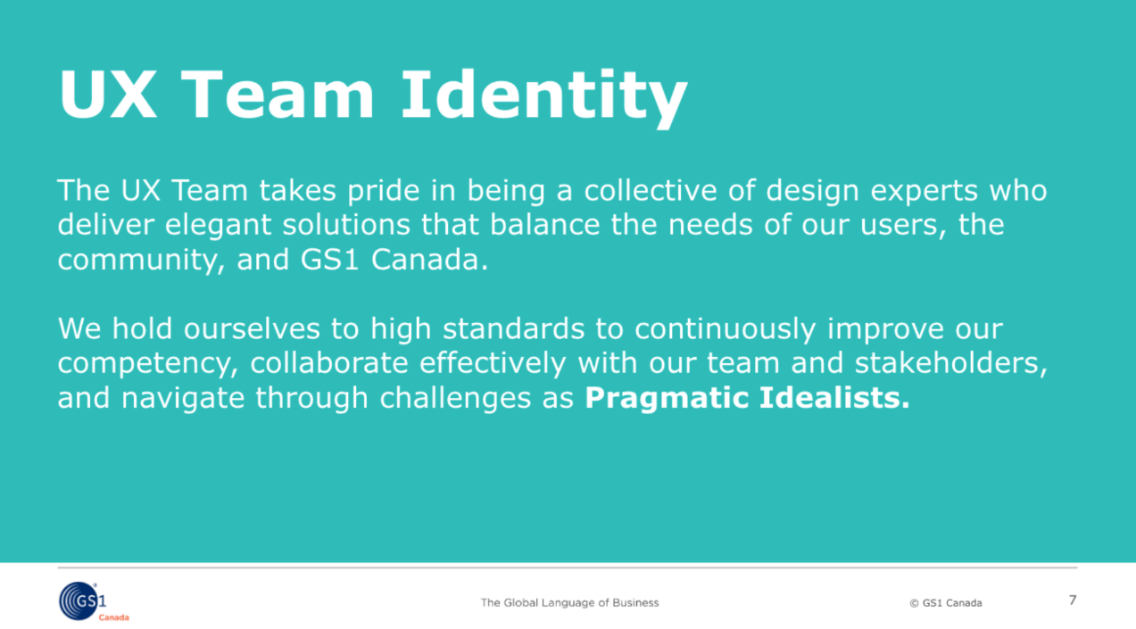 The UX Playbook is our brand manual that defines who we are, what we do, and where we’re headed. It drives team growth, business alignment, and engagement with UX. This deck includes key slides from the playbook I built with the UX team at GS1 Canada. It showcases our role, success metrics, and strategy. I use it to engage teams, executives, and vendors, whether to demonstrate value, educate, secure sponsorship, or guide collaboration. By making our impact clear it builds trust, drives investment, and strengthens strategic partnerships.