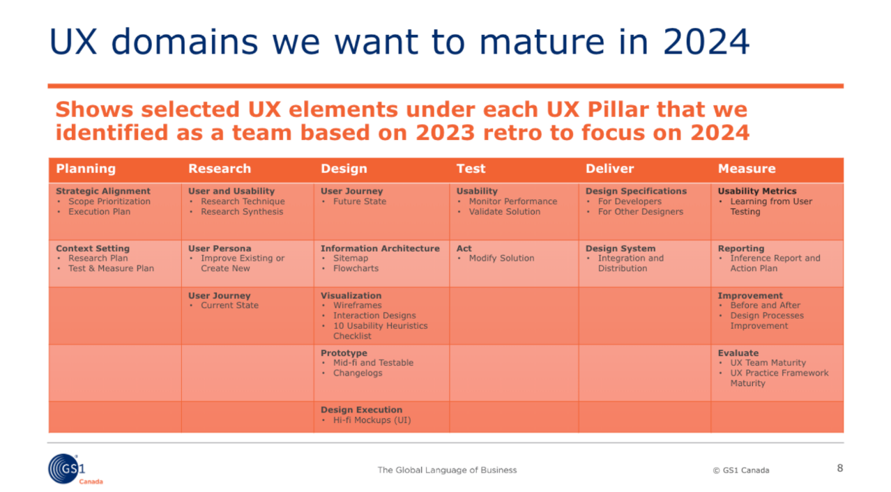 GS1 Canada’s first UX Practice Lead role building DesignOps through Design System, UX Framework and a UX Community of Practice from 0 to 1