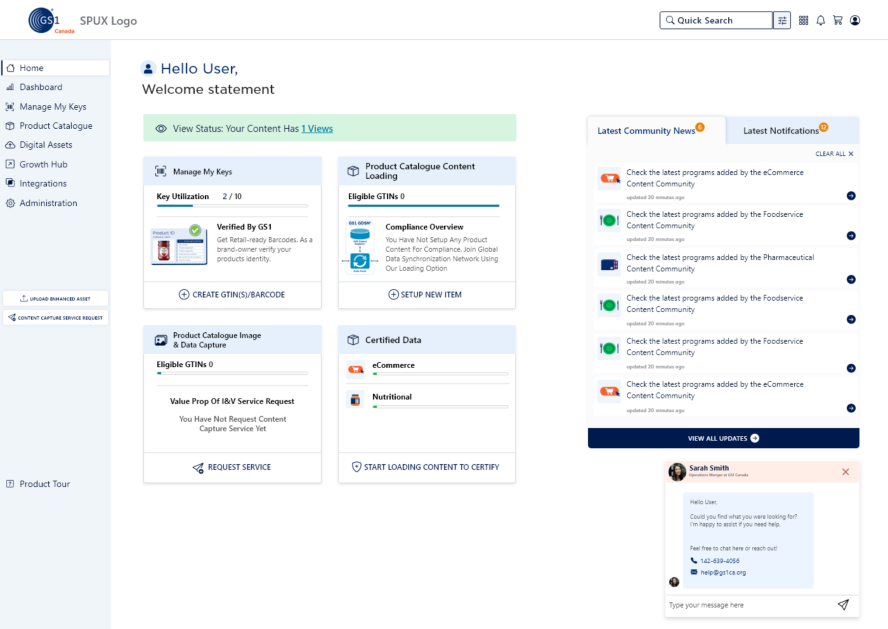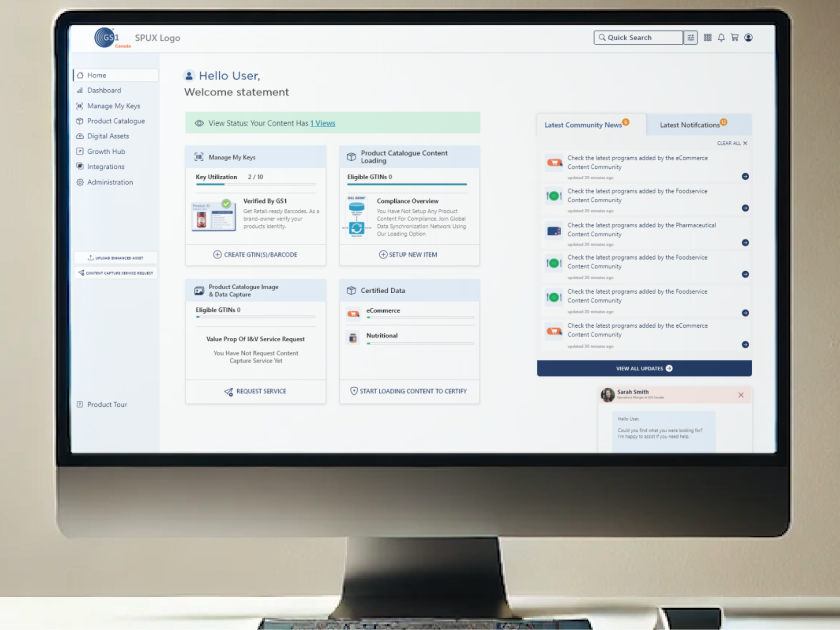 Onboarding: Help users get started quickly after purchasing their barcode to onboard with GS1 Canada. They’ll need GS1 Canada’s services to populate product data and conduct business in the supply chain industry.